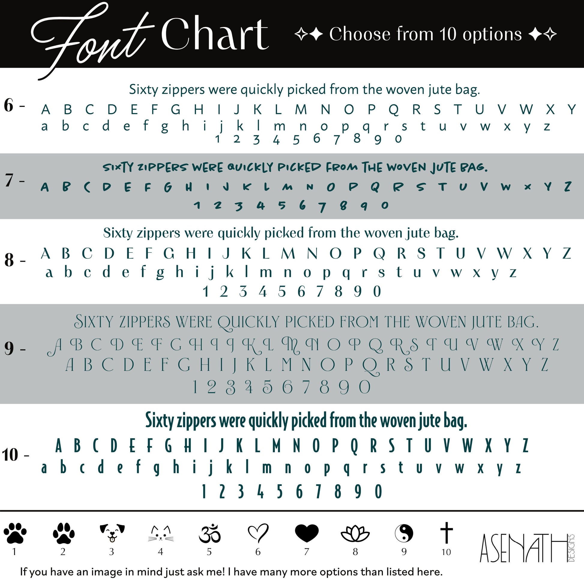 Enter your text, the number font you would like, and if you want a symbol in the personalization box.