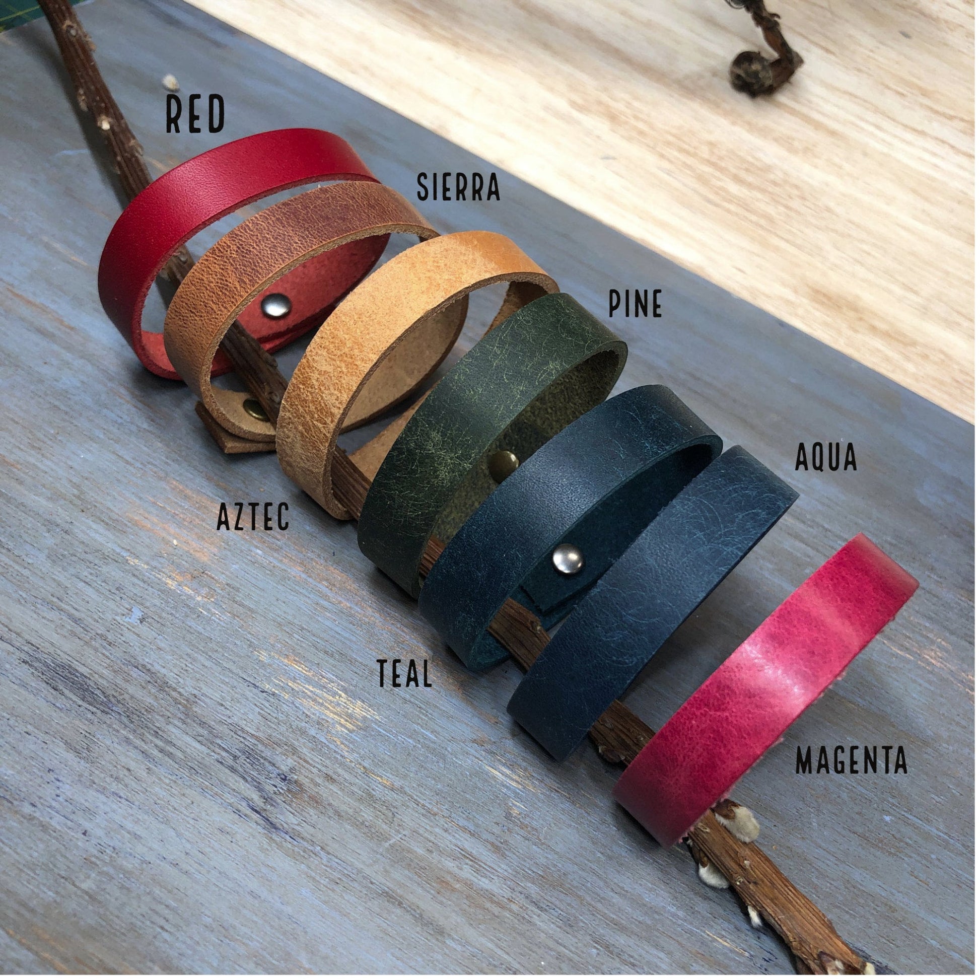 Leather is a natural product. Some natural markings and bits of character will occur throughout each bracelet. The bracelet you receive may differ slightly from the one shown in the pictures.