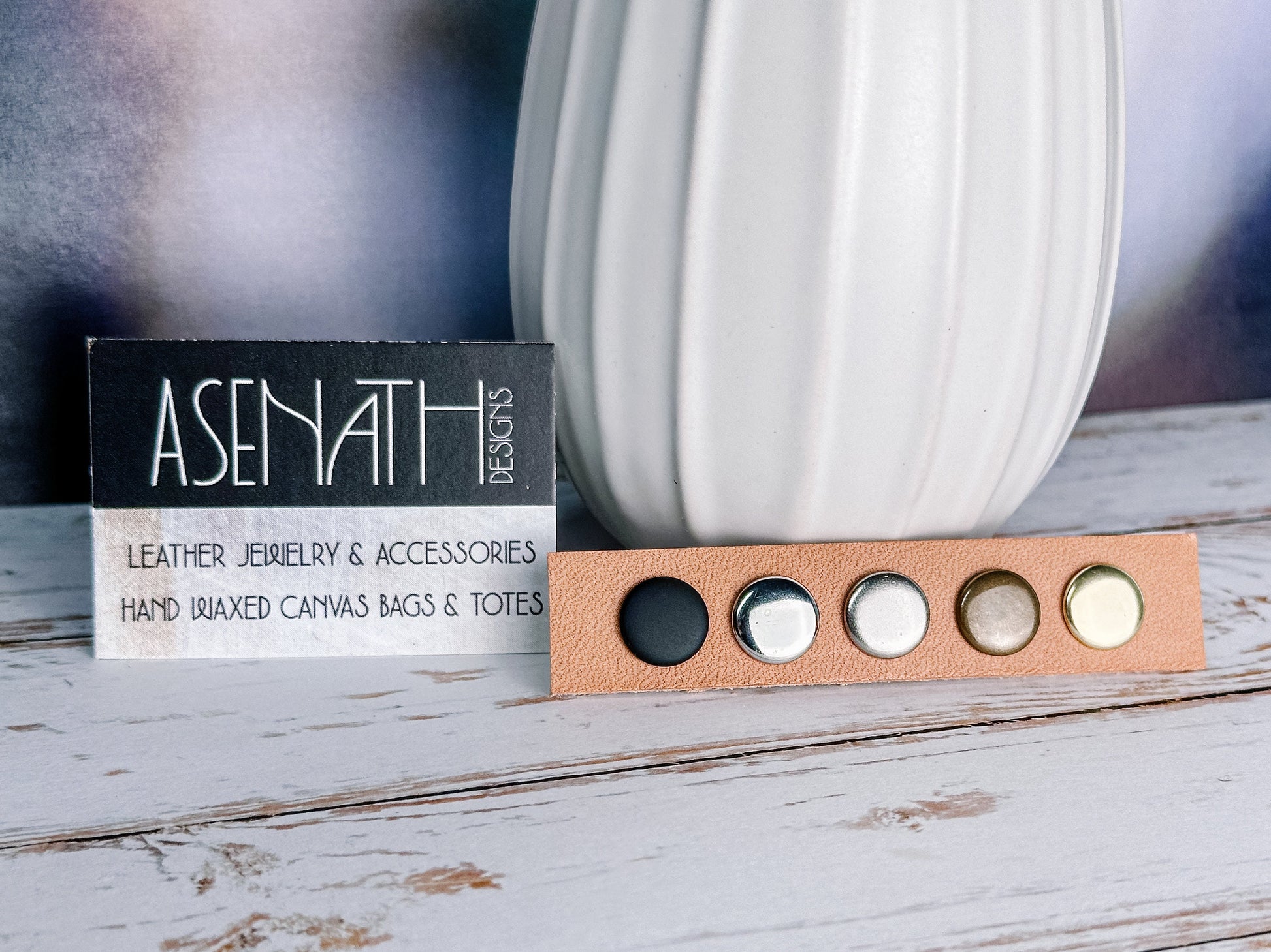 ▪︎ Select your leather (I use antique brass snaps on all the waxy, brown and natural leathers, black snaps with the black leather and matte nickel with all other colors. If you would like a specific color snap on your bracelet just leave me a note in personalization box.)